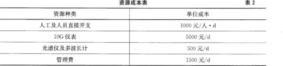 问题 某DWDM传输设备安装工程由甲、乙、丙、丁四个站组成,其中甲站、丁站为终端站,乙站、丙站为光放站。本工程新建一套公务系统、一套网管系统,施工单位承包方式为包工不包料。项目经理对工程进行工作分解后,根据工程量列出了工作的持续时间,所需主要资源以及工作的工艺关系,见表1。 本工程的资源配置为:最多能投入6人、各种仪表1套,工程计划工期42 d。据此,项目经理经安排后绘出了双代号网络图,如图1所示。 施工单位的资源成本,见表2(其他成本不计)。 本工程在实施过程中发生了如下事件:? 事件1:由于设计单位疏忽,工程中发现甲站走线位置与机房实际情况不符,修改设计造成甲站安装增加了4人/d的工作量。 事件2:丁站本机测试时发现一块光波长转换器机盘的发光功率不合格,需要厂家更换,停工5d。 事件3:在整理竣工资料期间,由于施工人员参加职称考试,造成工期延误2d。 【问题】? 1.根据图中的安排分别计算人工及人员直接开支成本、仪表成本、管理成本和总计划成本。 2.利用改变工作之间组织关系的方法对图中的安排进行工期优化,绘出优化后的双代号网络图并用双箭线标出关键路径,计算优化后的工期。 3.分别指出本工程中的三个事件是否可以向建设单位提出索赔要求?简要说明理由并计算本工程可索赔的工期。 4.本工程的系统测试项目包括哪些?