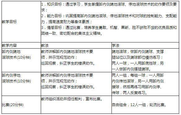 案例: 足球是初中校园广受男生喜爱的课程,它是一种全身性的活动,有利于学生的全面发展。初三某班共有男生24人,教学内容为脚内侧踢地滚球、停地滚球技术,...
