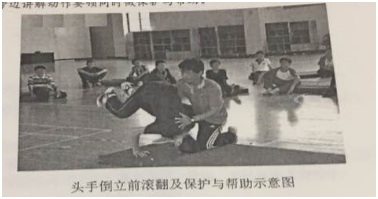 解析 ①由图所示,该教师在教学中出现教学组织混乱的情况,出现这一问题的主要原因是教师在教学中未对学生进行纪律的强调,学生的纪律意识较差。改进意见:教师在实施某一项练习时,应强调练习的要求及注意事项,并对练习队形进行调整,要做到学生能清晰准确的观察和听到讲解示范的过程。在进行头手倒立示范讲解时,最好将学生的队形调整为双列式,这样学生可以更好的观察动作示范。 ②教师在进行保护与帮助时的做法错误,主要是因为该教师对本科所学内容头手倒立前滚翻教材教法了解不透彻,备课不充分。改进意见:应充分做好备课工作,掌握技术做法与要求,动作要点,正确的保护与帮助方法,对该技术进行保护与帮助时应教师站在联系者前方双手扶其小腿,当重心超过垂直部位时,稍推其手,低头,团身向前翻滚。 ③教师在学生对技术动作不理解情况下让学生进行示范,这个做法不合理,同事在旁观察的同学也建立不了完整准确的技术动作。改进意见:在进行示范动作时,尤其是具有一定难度的动作,教师应采用自身示范,并且强调动作的几个关键点,如双手与头的位置,头部接触垫子的位置,用力的方法等。
