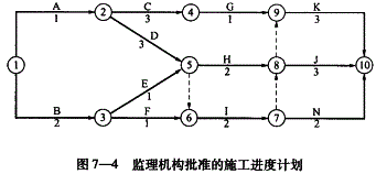 某工程项目,建设单位与施工单位按照《建设工程施工合同(示范文本)》签订了施工合同。合同工期为9个月,合同总价为840万元。项目监理机构批准的施工进度计划如图7-4所示(时间单位:月),