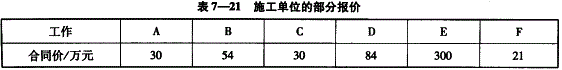 各项工作均按照最早时间安排且匀速施工,施工单位的部分报价见表7-21。