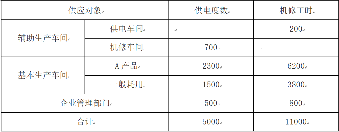 甲工厂有供电、机修两个辅助生产车间,2018年12月份,供电车间费用10000元,机修车间费用8000元。其供应的对象和数量如下表所示:采用直接分...