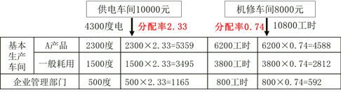 解析 【答案】D 借:生产成本—基本生产成本—A产品        5359   制造费用                  3495   管理费用                  1165  贷:生产成本—辅助生产成本—供电车间      10000 借:生产成本—基本生产成本—A产品        4588   制造费用                  2812   管理费用                   592  贷:生产成本—辅助生产成本—机修车间      8000