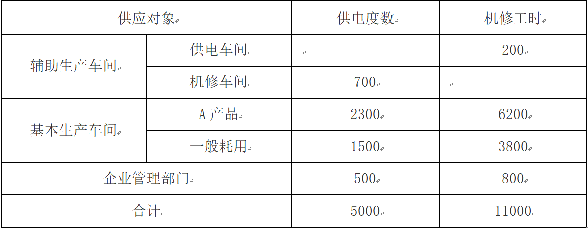 问题 甲工厂有供电、机修两个辅助生产车间,2018年12月份,供电车间费用10000元,机修车间费用8000元。其供应的对象和数量如下表所示: 采用交互分配法分配12月份电费和机修费用。分配率保留两位小数。