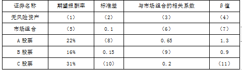 (2010年)假设资本资产定价模型成立,表中的数字是相互关联的。求出表中(1)~(11)位置的数字。