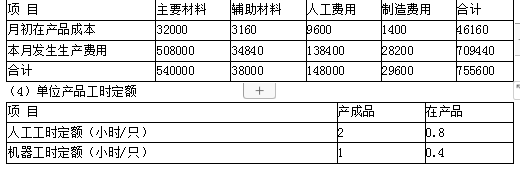 解析 (1)完工产品负担的主要材料费用=540000/(3500+500)×3500=472500(元)   月末在产品负担的主要材料费用=540000/(3500+500)×500=67500(元)   (2)完工产品负担的辅助材料费用=38000/(3500+500×60%)×3500=35000(元)   月末在产品负担的辅助材料费用=38000/(3500+500×60%)×500×60%=3000(元)   (3)本月完工产品负担的人工费用=148000/(3500×2+500×0.8)×3500×2=140000(元)   月末在产品负担的人工费用=148000/(3500×2+500×0.8)×500×0.8=8000(元)   (4)本月完工产品负担的制造费用=29600/(3500×1+500×0.4)×3500=28000(元)   月末在产品负担的制造费用=29600/(3500×1+500×0.4)×500×0.4=1600(元)   (5)本月完工产品总成本=472500+35000+140000+28000=675500(元)   单位成本=675500/3500=193(元/件)