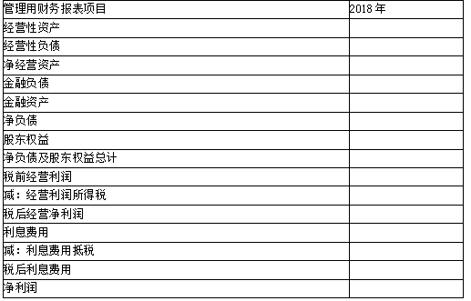 (2018年)甲公司是一家通用设备制造企业,拟采用管理用报表进行财务分析。相关资料如下:(1)甲公司2018年主要财务报表数据单位:万元(...