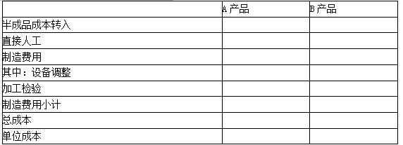 问题 (2018年)甲公司是一家制造企业,生产A、B两种产品,产品分两个步骤在两个基本生产车间进行。第一车间将原材料手工加工成同一规格型号的毛坯,转入半成品库;第二车间领用毛坯后,利用程控设备继续加工,生产出A、B两种产品,每件产品耗用一件毛坯。公司根据客户订单分批组织生产,不同批次转换时,需要调整机器设备。   甲公司分车间采用不同的成本核算方法:   第一车间采用品种法。原材料在开工时一次投入,其他费用陆续均匀发生。生产成本采用约当产量法在完工半成品和月末在产品之间进行分配。完工半成品按实际成本转入半成品库,发出计价采用加权平均法。   第二车间采用分批法和作业成本法相结合的方法。第二车间分批组织生产,当月开工当月完工,无月初月末在产品。除耗用第一车间的半成品外,不再耗用其他材料,耗用的半成品在生产开始时一次投入,直接人工费用陆续均匀发生。由于第二车间是自动化机加工车间,制造费用在总成本中比重较高,公司采用作业成本法按实际分配率分配制造费用。   2018年9月,相关成本资料如下:   (1)本月半成品,A产品、B产品的产量   单位:件 (2)月初半成品库存400件,单位平均成本127.5元。   (3)第一车间月初在产品成本和本月生产费用   单位:元 (4)第二车间本月直接人工成本   单位:元  (5)第二车间本月制造费用  要求:   (1)编制第一车间成本计算单(结果填入下方表格中,不用列出计算过程)。   第一车间成本计算单   产品名称:半成品 (2)计算半成品发出的加权平均单位成本。   (3)编制第二车间作业成本分配表(结果填入下方表格中,不用列出计算过程)。   作业成本分配表        单位:元 (4)编制A、B产品汇总成本计算单(结果填入下方表格中,不用列出计算过程)。   汇总成本计算单      单位:元