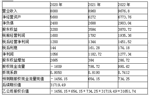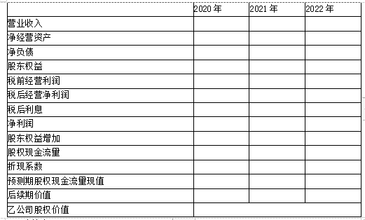 (2019年)甲公司是一家投资公司,拟于2020年初对乙公司増资3000万元,获得乙公司30%的股权。由于乙公司股权比较分散,甲公司可以获得控股权。为分析...
