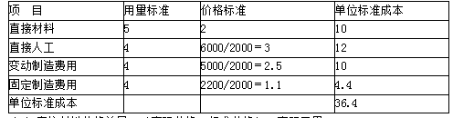 解析 (1)甲产品标准成本卡,填写下表: (2)直接材料价格差异=(实际价格-标准价格)×实际用量   =(2.1-2)×2050=205(元)   直接材料用量差异=(实际用量-实际产量下标准用量)×标准价格   =(2050-490×5)×2=-800(元)   (3)直接人工效率差异   =(实际人工工时-实际产量下标准人工工时)×工资率标准   =(2100-490×4)×3=420(元)   直接人工工资率差异   =(实际工资率-工资率标准)×实际人工工时   =(6620/2100-3)×2100=320(元)   (4)变动制造费用效率差异   =(实际工时-实际产量下标准工时)×标准分配率   =(2100-490×4)×2.5=350(元)   变动制造费用耗费差异   =(实际分配率-标准分配率)×实际产量下实际工时   =(5400/2100-2.5)×2100=150(元)   (5)固定制造费用耗费差异   =实际固定制造费用-预算产量下标准固定制造费用   =1900-2200=-300(元)   固定制造费用能量差异   =(预算产量下标准工时-实际产量下标准工时)×标准分配率   =(2000-490×4)×1.1=44(元)   固定制造费用闲置能量差异   =(预算产量下标准工时-实际产量下实际工时)×标准分配率   =(2000-2100)×1.1=-110(元)   固定制造费用效率差异   =(实际产量下实际工时-实际产量下标准工时)×标准分配率   =(2100-490×4)×1.1=154(元)