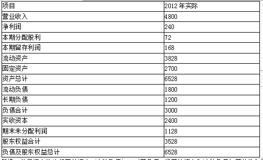 B公司2012年财务报表主要数据如下表所示:(单位:万元):假设B公司资产均为经营性资产,流动负债均为经营负债,经营性资产和流动负债与营业收入是同...