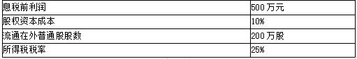 B公司的资本目前全部由发行普通股取得,其有关资料如下: B公司准备按4%的利率发行债券900万元,用发行债券所得资金以每股15元的价格回购部分发行...