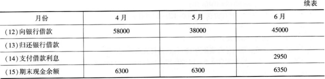 解析 根据题意分析可知: (1)当月经营现金收入=当月销售收入×60%+上月销售收入×30%+上上月销售收入×10% (2)直接材料采购支出=本月采购本月支付的货款+上月采购本月支付的货款 =本月采购额的50%+上月采购额的50% =下月销售收入x60%x50%+本月销售收入x60%x50% =下月销售收入x30%+本月销售收入x30% =(本月销售收入+下月销售收入)x30% 编制的现金预算如下: 6月份借款的计算: 6000≤-35700+x-(58000×3%+38000×2%+x×1%)≤7000 6000≤-38200+0.99x≤7000 44646≤X≤45657 取1000元的倍数,则为45000。 因为四月初的借款58000在6月底支付利息,一共有三个月,所以利率应该是12%/12x3=3%; 五月初的借款38000在6月底支付利息,一共有2个月,所以利率应该是12%/12x2=2%; 六月初的借款45000在6月底支付利息,一共有1个月,所以利率应该是12%/12=1%。 这三笔借款发生的时间不同,所以利息计算的时间长度也是不一样的。 因此,6月末支付的借款利息=58000×3%+38000×2%+45000×1%=2950(元)。