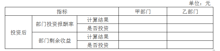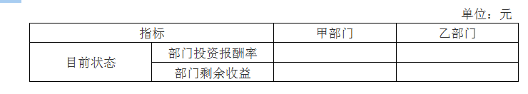 问题 德利公司是一家上市公司,正对公司内部甲、乙两个部门进行业绩考核。2019年相关资料如下: 要求: (1)分别计算甲、乙两个部门的部门投资报酬率和部门剩余收益(结果填入下方表格中,不用列出计算过程)。 (2)假定德利公司现有一投资机会,投资额40万元,每年可创造税前经营利润60000元,如果甲、乙两个部门都可进行该投资,且投资前后各自要求的税前投资报酬率保持不变,分别计算甲、乙两个部门投资后的部门投资报酬率和部门剩余收益;分析如果德利公司分别采用部门投资报酬率和部门剩余收益对甲、乙两个部门进行业绩考核,甲、乙两个部门是否愿意进行该投资(结果填入下方表格中,不用列出计算过程)。 (3)假定德利公司甲、乙两个部门,其2019年度经过调整的相关财务数据如下表所示,计算甲、乙两个部门的经济增加值并比较其业绩。