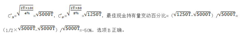 选项 A.最佳现金持有量保持不变 B.将最佳现金持有量降低50% C.将最佳现金持有量提高50% D.将最佳现金持有量提高100%