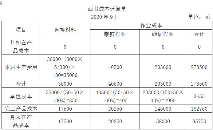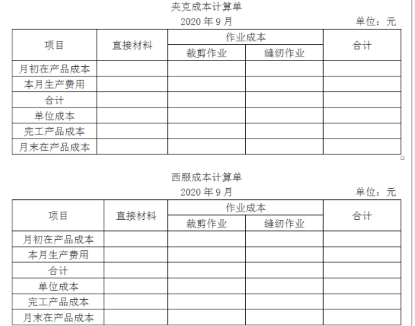 甲公司是一家服装生产企业,按订单组织生产,2020年9月接受订单加工200件夹克和100件西服。西服和夹克均需先后经过裁剪和缝纫两道作业工序方可完成。原材...
