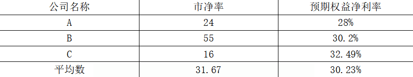 甲公司是一家固定资产很少的高科技公司,其每股收益为0.5元,每股净资产为1.5元,每股股票市场价格为20元。甲公司预期增长率为10%,预期权益净利率为30...
