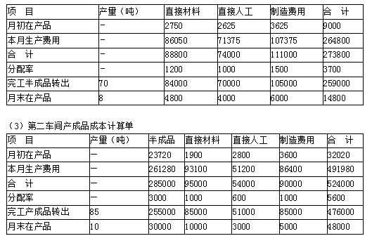 甲公司是一家化工原料生产企业,只生产一种产品,产品分两个生产步骤在两个基本生产车间进行,第一车间生产的半成品转入半成品库,第二车间领用半成品后继续加工成产...