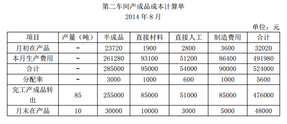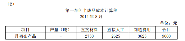 甲公司是一家化工原料生产企业,只生产一种产品,产品分两个生产步骤在两个基本生产车间进行,第一车间生产的半成品转入半成品库,第二车间领用半成品后继续加工成产...
