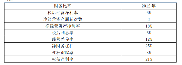 解析 (1) 税后经营净利率=180/3000×100%=6% 净经营资产周转次数=3000/1000=3(次) 净经营资产净利率=180/1000×100%=18% 税后利息率=12/200×100%=6% 经营差异率=18%-6%=12% 净财务杠杆=200/800×100%=25% 杠杆贡献率=12%×25%=3% 权益净利率=18%+3%=21% (2) 权益净利率=净经营资产净利率+(净经营资产净利率-税后利息率) ×净财务杠杆 2012 年行业平均权益净利率=19.50%+(19.50%-5.25%) ×40.00%=25.20%① 替换净经营资产净利率: 18%+(18%-5.25%) ×40.00%=23.1%② 替换税后利息率: 18%+(18%-6%) ×40.00%=22.8%③ 替换净财务杠杆: 18%+(18%-6%) ×25%=21%④ 净经营资产净利率降低对于权益净利率变动影响=②-①=23.1%-25.20%=-2.1% 税后利息率提高对于权益净利率变动的影响=③-②=22.8%-23.1%=-0.3% 净财务杠杆下降对于权益净利率变动的影响=④-③=21%-22.8%=-1.8% 2012 年甲公司权益净利率-2012 年行业平均权益净利率=21%-25.20%=-4.2% 综上可知: 净经营资产净利率降低使得权益净利率降低 2.1%, 税后利息率提高导致权益净 利率下降 0.3%, 净财务杠杆下降导致权益净利率下降 1.8%。 三者共同影响使得 2012 年甲公 司权益净利率比 2012 年行业平均权益净利率低 4.2%。