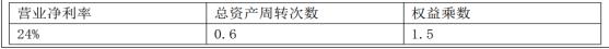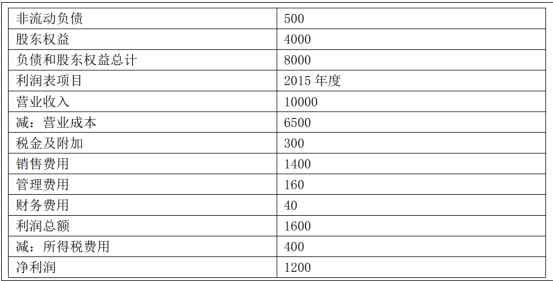 解析 (1)甲公司2015年指标:营业净利率=1200/10000=12%,总资产周转次数=10000/8000=1.25 (次),权益乘数=8000/4000=2 乙公司权益净利率=24%×0.6×1.5=21.6% 甲公司权益净利率=12%×1.25×2=30% 营业净利率变动对权益净利率的影响=(12%-24%)×0.6×1.5=-10.8% 总资产周转次数变动对权益净利率的影响=12%×(1.25-0.6)×1.5=11.7% 权益乘数变动对权益净利率的影响=12%×1.25×(2-1.5)=7.5% (2)营业净利率是净利润占收入的比重,表明每1元营业收入带来的净利润,反映企业的盈利能力;总资产周转次数是营业收入与平均总资产的比值,表明1年中总资产周转的次数 (或者表明每1元总资产支持的营业收入),反映企业的营运能力;权益乘数是总资产与股东权益的比值,表明每1元股东权益控制的总资产的金额,反映企业的长期偿债能力。 两公司在经营战略上存在较大差别:甲公司采取的是“低盈利、高周转”(或薄利多销)的策略,乙公司采取的是“高盈利、低周转”(或多利薄销)的策略。在财务政策上,两公司也有很大不同:甲公司采取的是相对高风险的财务政策,财务杠杆较大;乙公司采取的是相对低风险的财务政策,财务杠杆较小。 【提示】指标的经济含义的答题套路: 设Y=A/B (1)Y的经济含义是“每1元B对应多少A”。 (2)Y比率越高,则企业的……能力越强/越弱。