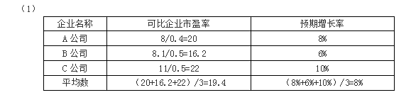 解析 修正平均市盈率=19.4/(8%×100)=2.425 甲公司每股股权价值=2.425×9%×100×(3000/10000)=6.55(元/股)。 (2) 修正平均市净率=3.9/(21%×100)=0.19 甲公司每股股权价值=0.19×14.35%×100×(21800/10000)=5.94(元/股) (3)甲公司的固定资产较少,净资产与企业价值关系不大,市净率法不适用;市盈率法把价格和收益联系起来,可以直观地反映投入和产出的关系。用市盈率法对甲公司估值更合适。