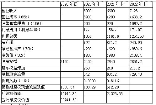 甲公司是一家投资公司,拟于2020年初以18000万元收购乙公司全部股权,为分析收购方案可行性,收集资料如下:(1)乙公司是一家传统汽车零部件制造企业...