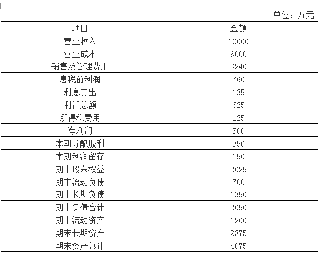 解析 (1)易变现率=(2025+700+1350-2875)/1200=1 公司生产经营没有季节性且易变现率为1,所以该公司采取的是适中型营运资本筹资策略。 (2) 净经营资产=4075-700=3375(万元) 净负债=1350万元 所有者权益=2025万元 净财务杠杆=1350/2025=66.67% 税后经营净利润=净利润+税后利息费用=500+135×(1-20%)=608(万元) 税后利息费用=135×(1-20%)=108(万元) 税后利息率=108/1350=8% 净经营资产净利率=608/3375=18.01% 权益净利率=18.01%+(18.01%-8%)×66.67%=24.68% 或:权益净利率=500/2025=24.69% (3)乙公司:20%+(20%-10%)×50%=25% 替换净经营资产净利率:18.01%+(18.01%-10%)×50%=22.02% 替换税后利息率:18.01%+(18.01%-8%)×50%=23.02% 替换净财务杠杆:18.01%+(18.01%-8%)×66.67%=24.68% 净经营资产净利率降低对权益净利率变动的影响=22.02%-25%=-2.98% 税后利息率降低对权益净利率变动的影响=23.02-22.02%=1% 净财务杠杆提高对权益净利率变动的影响=24.68%-23.02%=1.66% (4)2020年的销售增长率=2020年的内含增长率=(500/3375)×(150/500)/[1-(500/3375)×(150/500)]=4.65% (5)①2020年的销售增长率=2019年的可持续增长率=(500/2025)×(150/500)/[1-(500/2025)×(150/500)]=8% ②股利增长率=销售增长率=8% (6)融资总需求=净经营资产的增加=基期净经营资产×销售增长率=3375×10%=337.5(万元) 外部筹资额=337.5-10000×(1+10%)×6%×(150/500)=139.5(万元)。
