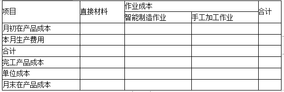 问题 甲公司是一家制造业企业,生产A、B两种产品。生产车间有两台设备,其中,一台属于高端智能制造设备,另一台属于手工加工设备。A、B产品均需先后经过智能制造和手工加工两道作业工序方可完成。A产品主要由智能制造设备完成,B产品主要由手工加工设备完成。直接材料均在开工时一次性投入。公司现采用传统成本计算法计算成本,直接材料、直接人工直接计入产品成本,制造费用先按车间归集,再按直接人工工资比例分配进入产品成本。2019年9月生产成本相关资料如下: (2)传统成本计算法下A、B产品成本计算单   A产品成本计算单   2019年9月 单位:元 (3)产品毛利   单位:元 目前,A产品供不应求,B产品滞销。公司销售经理建议A提价,B降价,以提高公司获利能力。生产经理认为制造费用大部分由智能制造设备引起,按直接人工工资比例分配导致A、B产品成本计算不准确,应采用作业成本法对制造费用分配进行优化,从而为调价提供可靠的成本数据。公司财务部门和生产技术部门对生产过程进行了分析,识别出三项作业,分别是设备检修作业、智能制造作业和手工加工作业。设备检修作业负责对智能制造设备、手工加工设备进行检修,作业动因是检修次数;智能制造作业的作业动因是机器工时;手工加工作业的作业动因是人工工时。直接人工成本不再单列成本项目,被归入相应作业库。相关资料如下:   (1)月末在产品   A在产品40件,全部处于智能制造阶段,尚未进入手工加工阶段,平均完成智能制造作业的50%;B在产品50件,智能制造作业全部完成,手工加工作业平均完成60%。   (2)作业成本 要求:   (1)编制作业成本分配表(结果填入下方表格中,不用列出计算过程)。 (2)编制产品成本计算单(结果填入下方表格中,不用列出计算过程)。   A产品成本计算单   2019年9月 单位:元 B产品成本计算单   2019年9月 单位:元   (3)根据作业成本法计算的单位产品成本,判断A、B产品目前定价是否合理,并简要说明理由。