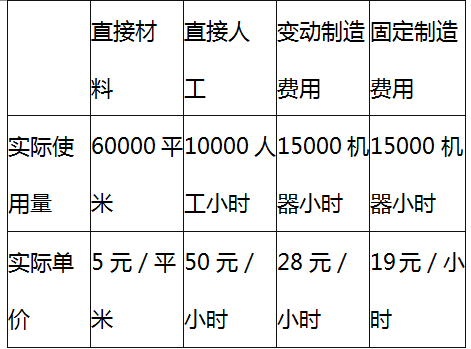 解析 (1) ①直接材料的价格差异=(5-4)×60 000=60 000(元)(U) ②直接材料的数量差异=(60 000-12 500×4.5)×4=15 000(元)(U) ③直接材料的成本差异=5×60 000-12 500×4.5×4=75 000(元)(U) (2) ①直接人工的工资率差异=(50-47.5)×10 000=25 000(元)(U) ②直接人工的效率差异=(10 000-1×12 500)×47.5=-11 8750(元)(F) ③直接人工的成本差异=10 000×50-12 500×1×47.5=-93 750(元)(F) (3) ①变动制造费用的耗费差异=(28-30)×15 000=-30 000(元)(F) ②变动制造费用的效率差异=(15 000-12 500×1.3)×30=-37 500(元)(F) ③变动制造费用的成本差异=28×15 000-30×12 500×1.3=-67 500(元)(F) (4) ①固定制造费用的耗费差异=19×15 000-20×13 000×1.4=-79 000(元)(F) ②固定制造费用的闲置能量差异=20×13 000×1.4-20×15 000=64 000(元)(U) ③固定制造费用的效率差异=(15 000-12 500×1.4)×20=-50 000(元)(F) ④固定制造费用的成本差异=19×15 000-20×12 500×1.4=-65 000(元)(F) (5) ①成本差异总额=75 000-93 750-67 500-65 000=-151 250(元) ②单位成本差异=-151 250/12 500=-12.1(元/平方米)。