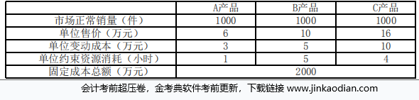甲公司是一家制造业上市公司,生产A、B、C三种产品,A、B、C三种产品都需要通过一台关键设备加工,该设备是公司的关键约束资源。年加工能力3000小时。...