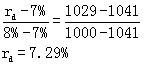 解析 (1)假设债务税前资本成本为rd   1000×8%×(P/A, rd,5)+1000×(P/F, rd,5)=1050×(1-2%)   即:1000×8%×(P/A, rd,5)+1000×(P/F, rd,5)=1029   如果折现率为8%,则:   1000×8%×(P/A,8% ,5)+1000×(P/F, 8%,5)=1000   如果折现率为7%,则:   1000×8%×(P/A, 7%,5)+1000×(P/F, 7%,5)=1041  债务税后资本成本=7.29%×(1-25%)=5.47%   (2)计算股权资本成本   首先,确定公司当前的β资产:   β资产=1.75[1+1×(1-25%)]=1   其次,确定公司新项目的β权益:  最后,根据资本资产定价模型计算股权资本成本:   股权资本成本=3.85%+1.5 ×(8.85%-3.85%)=11.35%   (3)计算加权平均资本成本   5.47%×2/5+11.35%×3/5=9%