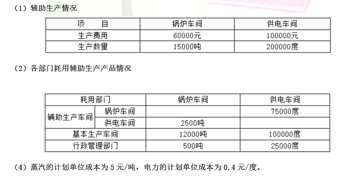 甲公司有锅炉和供电两个辅助生产车间,分别为基本生产车间和行政管理部门提供蒸汽和电力,两个辅助生产车间之间也相互提供产品。2013 年9 月份的辅助生产及耗...