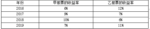 假定甲、乙两只股票最近4年收益率的有关资料如下:要求:(1)计算甲、乙两只股票的期望收益率;(2)计算甲、乙两只股票收益率的标准差;(...
