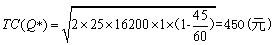 解析 每天消耗量是45件(16200/360),根据存货陆续供应和使用的模型,经济订货量为: =1800   最高库存量=1800-45×1800/60=450(件);平均库存量=450/2=225(件);与进货批量有关的总成本为:
