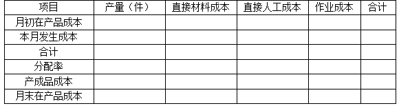 问题 某企业大量生产A、B两种产品,生产分为两个步骤,分别由第一车间、第二车间进行。第一车间是机加工车间(包括加工作业、设备调整作业、检验作业、材料验收作业),第一车间为第二车间提供半成品,第二车间为组装车间(包括组装、检验、包装等)。该车间采用逐步综合结转分步法计算产品成本,采用约当产量法在产成品和月末在产品之间进行分配,各步骤在产品的完工程度为本步骤的50%,材料均在生产开始时一次投入,半成品在第二车间生产开始时一次投入,其他成本费用陆续发生。第一车间完工产品全部结转到第二车间,不设半成品库。 各车间8月份有关产品产量的资料如下表所示: 单位:件 2019年8月第一车间A产品领用的直接材料成本为100000元,直接人工成本80000元;B产品领用的直接材料成本为80000元,直接人工成本80500元;两种产品一共耗用的制造费用为150000元,该企业试行作业成本法,将制造费用进行分配,公司管理会计师对第一车间按以下作业进行了划分。有关资料如下: 第二车间试行作业成本法的相关资料略。 2019年8月份第一车间月初有关成本数据如下: 第一车间                                单位:元 2019年8月份第二车间有关成本数据如下: 第二车间                                单位:元 要求:(1)按实际作业成本分配率分配作业成本,计算填列第一车间A和B半成品的成本计算单。 成本计算单 产品名称:A半成品         2019年8月             单位:元 成本计算单 产品名称:B半成品         2019年8月             单位:元 (2)计算填列第二车间A和B产品的成本计算单。 成本计算单 产品名称:A产品          2019年8月             单位:元 成本计算单 产品名称:B产品          2019年8月             单位:元 (3)对第二车间A产品和B产品的产成品成本分别进行成本还原,还原时按第一车间本月所产半成品成本项目的构成比例进行还原。