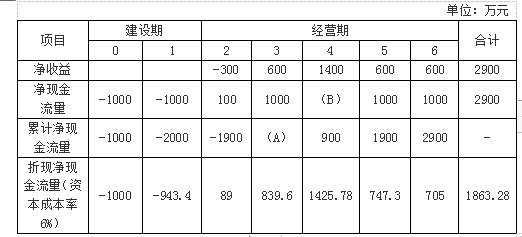 某企业拟进行一项固定资产投资,投资额为2000万元,分两年投入,该项目的现金流量表(部分)如下:要求:(1)计算上表中用英文字母表示的项目的数...