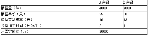 某企业生产A、B两种产品,需要用同一关键设备加工,该设备属于紧缺资源。设备每月最大加工时间12000分钟。A、B产品的有关数据如下。要求:为有效利...