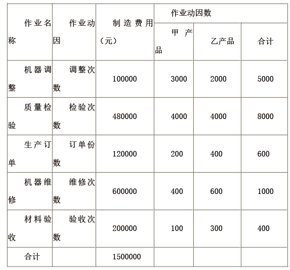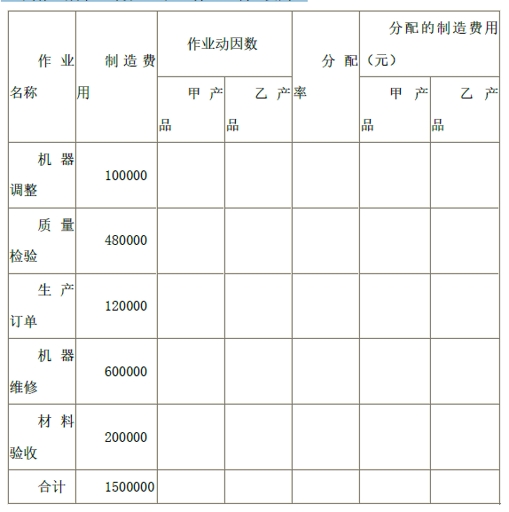 解析 1)各项作业动因分配率计算结果如下表所示: 作业动因分配率 2)甲乙产品分配的制造费用计算结果如下表所示: 按作业成本法计算的制造费用