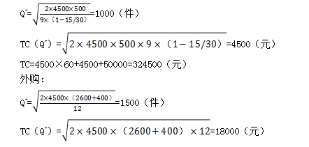 某企业生产中使用的A标准件既可自制也可外购。若自制,单位生产成本为60元,每次生产准备成本500元,年固定生产准备成本为50000元,每次生产准备时间需要...