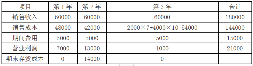 某企业最近3年新生产一种产品,销售单价为10元,单位变动生产成本为4元,固定生产成本为24000元/年。最近连续3年的销售量均为6000件,产量分别为60...