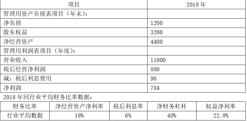 万华公司是一家生产企业,采用管理用财务报表分析体系进行权益净利率的行业平均水平差异分析。该公司2018年的管理用财务报表相关数据如下:单位:万元 ...