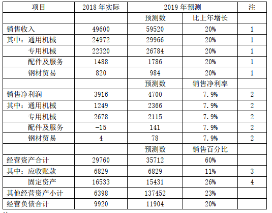 问题 资料一:L 集团是一家机械制造公司,主要业务包括通用机械、专用机械、配件及服务和钢材贸易四个板块,在集团管理架构中分属于四个事业部。L 集团的四大业务板块2016 年到 2018 年的收入和利润情况,汇总如下: 单位:万元 资料二:L 集团的财务经理因忙于其他内部财务工作,请新入职的小王协助用销售百分比法编写一份 2019 年度 L 集团的财务预测,并估计外部融资额(假设可动用的金融资产为零)和内含增长率。小王从财务经理处了解到,2019 年总销售收入预期比上年增长 20%(主要来自销量的增长),假设总销售净利率水平、经营资产销售百分比、经营负债销售百分比均与上年持平,预计股利支付率为 40%;2018 年公司的各条生产线基本都已满负荷运行,无设备闲置的情况;所有产品均为自产,没有外包生产。小王简单了解了上述情况后便开始着手编制财务预测,并递交了以下的初稿给财务经理审阅。小王在初稿中对自己在预测中作的假设作了附注。而对于外部融资额和内含增长率,小王则表示自己经验不足不知应该如何估算。 单位:万元 注: 1. 销售收入增长 20%。 2. 利润率保持上年水平。 3. 应收账款假设保持上年的余额水平不变。 4. 固定资产假设不增不减,余额减少仅因折旧所致。 要求: (1) 根据资料一和资料二给出的信息,识别小王所编制的财务预测中哪些项目存在错误,解释它们错在哪里,并给小王简要提出改正建议; (2) 根据资料二中财务经理告诉小王的信息及假设,估算外部融资额; (3) 给出至少三种解决企业资金需求的途径,并简要解释什么是内含增长率。