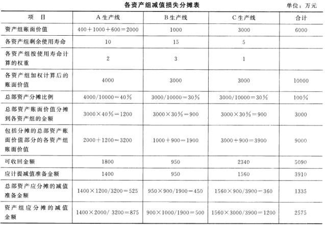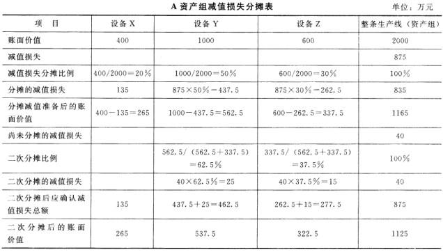 解析 (1) 因此,研发中心应计提的减值准备=525+450+360=1335(万元),A资产组应计提的减值准备为875万元,B资产组应计提的减值准备为500万元,C资产组应计提的减值准备为1200万元。 (2) 注意:X设备分摊的减值损失135万元:因为X设备公允价值减去处置费用后的净额为265万元,按照资产组分摊减值后该设备的账面价值不得低于公允价值减去处置费用后的净额、预计未来现金流量现值和0三者之中的较高者,因此此时X设备分摊的减值金额为400-265=135(万元)。X设备应计提的减值准备为135万元;Y设备应计提的减值准备为462.5万元;Z设备应计提的减值准备为277.5万元。(3)购买日合并商誉=900-1000*80%=100(万元)整体商誉=100/80%=125(万元)不含商誉的资产组账面价值=1200(万元)可收回金额=1225(万元)账面价值小于可收回金额,不确认减值,即可辨认净资产未发生减值。包含商誉在内的资产组账面价值=1200+125=1325(万元)可收回金额=1225(万元)应确认减值损失=1325-1225=100(万元)合并报表中应确认商誉减值=100*80%=80(万元)
