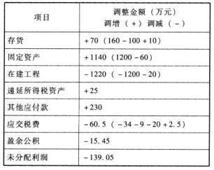 解析 (1)事项(1)、(2)、(3)和(5)属于调整事项。(2)事项(1)借:以前年度损益调整—主营业务收入200应交税费—应交增值税(销项税额)34贷:其他应付款230以前年度损益调整—财务费用4借:其他应付款230,贷:银行存款230(此分录不调整报告年度资产负债表的货币资金项目)借:库存商品160贷:以前年度损益调整—主营业务成本160借:应交税费—应交所得税9[(200-4-160)*25%]贷:以前年度损益调整—所得税费用9事项(2)借:以前年度损益调整—资产减值损失100贷:存货跌价准备100借:递延所得税资产25(100*25%)贷:以前年度损益调整—所得税费用25事项(3)借:固定资产1200贷:在建工程1200借:以前年度损益调整—管理费用60(1200÷10*6/12)贷:累计折旧60借:以前年度损益调整—财务费用20贷:在建工程20借:应交税费—应交所得税20(80*25%)贷:以前年度损益调整—所得税费用20事项(5)本事项属于发生在资产负债表日后期间的重大会计差错,按照调整事项处理。2014年2月,对工程进度所做估计进行调整调增收入5%。借:以前年度损益调整—主营业务成本40(800*5%)工程施工—合同毛利10贷:以前年度损益调整—主营业务收入50(1000*5%)借:以前年度损益调整—所得税费用2.5[(50-40)*25%]贷:应交税费—应交所得税2.5将上述调整分录所发生的“以前年度损益调整”科目金额结转至“利润分配—未分配利润”科目。借:利润分配—未分配利润154.5贷:以前年度损益调整154.5[(200-4-160-9)+(100-25)+(60+20-20)+(40-50+2.5)]借:盈余公积15.45贷:利润分配—未分配利润15.45(3)根据上述调整事项,调整财务报表的相关项目,将调整数填入下表。 注:工程施工调增10万元,因工程施工大于工程结算,故期末报表中在“存货”项目列示。