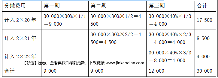 解析 (1) A公司的会计处理如下: 向职工发行的限制性股票并按有关规定履行了注册登记等增资手续,2×20年1月6日收到职工缴纳的认股款15 000万元时: 借:银行存款 (3 000×5)15 000   贷:股本 (3 000×1)3 000     资本公积——股本溢价 (3 000×4)12 000 同时,就回购义务确认负债: 借:库存股 15 000   贷:其他应付款——限制性股票回购义务 15 000 ②2×20年末 借:管理费用 17 500     贷:资本公积——其他资本公积   17 500 同时解锁日: 借:资本公积——其他资本公积 9 000   贷:资本公积——股本溢价 9 000 企业宣告分派现金股利: 借:利润分配——应付现金股利或利润 1 000   贷:应付股利——限制性股票股利 1 000 同时 借:其他应付款——限制性股票回购义务 1 000   贷:库存股 1 000 实际支付20年解锁部分时 借:应付股利——限制性股票股利(1 000×30%)300   贷:银行存款 300 同时达到限制性股票解锁条件而无需回购的股票 借:其他应付款 (15 000×30%-1 000)3 500   贷:库存股 (3 000万股×30%×5-1 000)3 500 该计划为一次授予、分期行权的计划,费用在各期的分摊如表: A公司一次授予、分期行权计划费用分摊情况 单位:万元 (2) ①2×21年 借:管理费用 8 500     贷:资本公积——其他资本公积 8 500 同时解锁日: 借:资本公积——其他资本公积 9 000   贷:资本公积——股本溢价 9 000 同时达到限制性股票解锁条件而无需回购的股票 借:其他应付款——限制性股票回购义务(15 000×30%)4 500   贷:库存股  (3 000万股×30%×5)4 500 ②2×22年 借:管理费用 4 000     贷:资本公积——其他资本公积 4 000 同时解锁日: 借:资本公积——其他资本公积  12 000   贷:资本公积——股本溢价    12 000 同时达到限制性股票解锁条件而无需回购的股票 借:其他应付款——限制性股票回购义务 (15 000×40%)6 000   贷:库存股 (3 000万股×40%×5)6 000