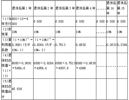 解析 (1)甲公司2×20年1月1日该600名职工退休后直至去世前企业将为其支付的累计退休福利在其退休时点的现值,即设定受益计划义务的现值=600×10×7.606=45 636(万元);各年情况见表1:   表1 计算设定受益计划义务及其现值(单位:万元) (2)①2×20年   当期服务成本=(45 636/20)÷(1+10%)19   =(45 636/20)×0.1635=373.07(万元)   借:管理费用(或相关资产成本)    373.07     贷:应付职工薪酬——设定受益计划义务 373.07   ②2×21年   当期利息费用=373.07×10%=37.31(万元)   当期服务成本=(45 636/20)÷(1+10%)18   =(45 636/20)×0.1799=410.50(万元)   2×21年设定受益计划义务合计=373.07+37.31+410.50=820.88(万元)   借:财务费用(或相关资产成本)    37.31     贷:应付职工薪酬——设定受益计划义务 37.31   借:管理费用(或相关资产成本)    410.50     贷:应付职工薪酬——设定受益计划义务 410.50   ③2×22年   当期利息费用=820.88×10%=82.09(万元)   当期服务成本=(45 636/20)÷(1+10%)17   =(45 636/20)×0.1978=451.34(万元)   2×22年设定受益计划义务合计=820.88+82.09+451.34=1354.31(万元)   借:财务费用(或相关资产成本)     82.09     贷:应付职工薪酬——设定受益计划义务  82.09   借:管理费用(或相关资产成本)    451.34     贷:应付职工薪酬——设定受益计划义务 451.34 (3)如果企业根据每期确认的设定受益计划义务提存资金,成立基金,并进行投资。则第1年末的基金金额为373.07万元,假定在第2年的利息收益为37.31万元。   借:应付职工薪酬——设定受益计划义务  37.31     贷:财务费用              37.31