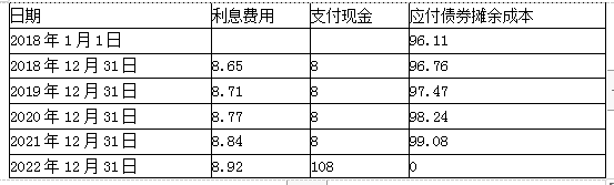 问题 某公司经批准于2018年1月1日发行债券10 000张,每张面值100元,票面利率8%,期限5年,每年末付息一次,发行债券当时的市场利率为9%,债券发行价格为96.11万元。债券溢折价采用实际利率法摊销。基于上述资料计算的如下会计指标中正确的有( )。