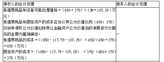 问题 甲、乙公司均为增值税一般纳税人,适用增值税率为13%,有关债务重组资料如下:   (1)2×19年11月5日,甲公司向乙公司赊购一批材料,含税价为1170万元。乙公司以摊余成本计量该项债权,甲公司以摊余成本计量该项债务。   (2)2×20年9月10日,甲公司因发生财务困难,无法按合同约定偿还债务,双方协商进行债务重组。乙公司同意甲公司用其生产的商品、作为固定资产管理的机器设备和一项债券投资抵偿欠款。甲公司用于抵债的资料如下:   ①库存商品:成本为350万元;不含税市价为450万元(等于计税价格);   ②固定资产:原价为750万元,累计折旧为200万元,已计提减值准备90万元;不含税公允价值为375万元(等于计税价格);   ③债权投资:账面价值总额为75万元;市价为117.75万元。票面利率与实际利率一致,按年付息;当日,该项债务的账面价值仍为1170万元。   抵债资产于2×20年9月20日转让完毕,甲公司发生设备运输费用3.25万元。   (3)乙公司将受让的商品、设备和债券投资分别作为低值易耗品、固定资产和以公允价值计量且其变动计入当期损益的金融资产核算,乙公司发生设备安装费用7.5万元。   2×20年9月20日,乙公司对该债权已计提坏账准备95万元,债券投资市价为105万元。当日,该债权的公允价值为1050万元(一定等于收到资产的含税的公允价值=450×1.13+375×1.13+117.75)。   要求:分别编制债权人和债务人的分录。