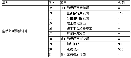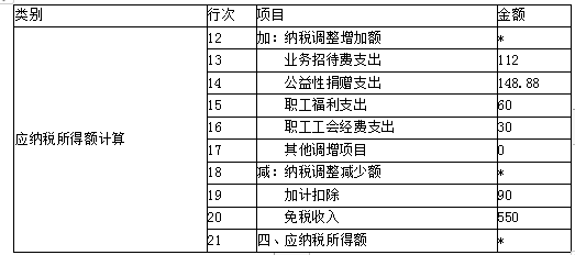 问题 某小汽车生产企业为增值税一般纳税人,2019年度自行核算的相关数据为:全年取得产品销售收入总额68000万元,应扣除的产品销售成本45800万元,应扣除的税金及附加9250万元,应扣除的销售费用3600万元、管理费用2900万元、财务费用870万元。另外,取得营业外收入320万元以及直接投资其他居民企业分回的股息收入550万元,发生营业外支出1050万元,全年实现会计利润5400万元,应缴纳企业所得税1350万元。   2020年2月经聘请的会计师事务所对2019年度的经营情况进行审核,发现以下相关问题:   (1)12月20日收到代销公司代销5辆小汽车的代销清单及货款158.2万元(小汽车每辆成本价20万元,与代销公司不含税结算价28万元)。企业会计处理为:   借:银行存款——代销汽车款  1582000     贷:预收账款——代销汽车款  1582000   (2)管理费用中含有业务招待费280万元、新技术研究开发费用120万元。   (3)营业外支出中含该企业通过省教育厅向某山区中小学捐款800万元。  (4)成本费用中含2019年度实际发生的工资费用3000万元、职工福利费480万元、职工工会经费90万元、职工教育经费70万元。   (5)7月10日购入一台符合有关目录要求的安全生产专用设备,支付金额200万元、增值税额26万元,当月投入使用,当年已经计提了折旧费用10万元。   说明:购买专用设备支付的增值税26万元,符合进项税额抵扣条件:假定购入并投入使用的安全生产专用设备使用期限为10年,不考虑残值   要求:   (1)填列答题卷给出的《企业所得税计算表》中带*号项目的金额。   (2)针对《企业所得税计算表》第13~17行所列项目需作纳税调整增加的情况,逐一说明调整增加的理由。   说明:该企业生产的小汽车适用消费税税率为9%、城市维护建设税税率为5%、教育费附加征收率为3%,地方教育费附加征收率2%;12月末“应交税费——应交增值税”账户借方无余额;购买专用设备支付的增值税26万元,符合进项税额抵扣条件;假定购入并投入使用的安全生产专用设备使用期限为10年,不考虑残值;对于符合加速折旧条件的设备、器具,该企业均享受。